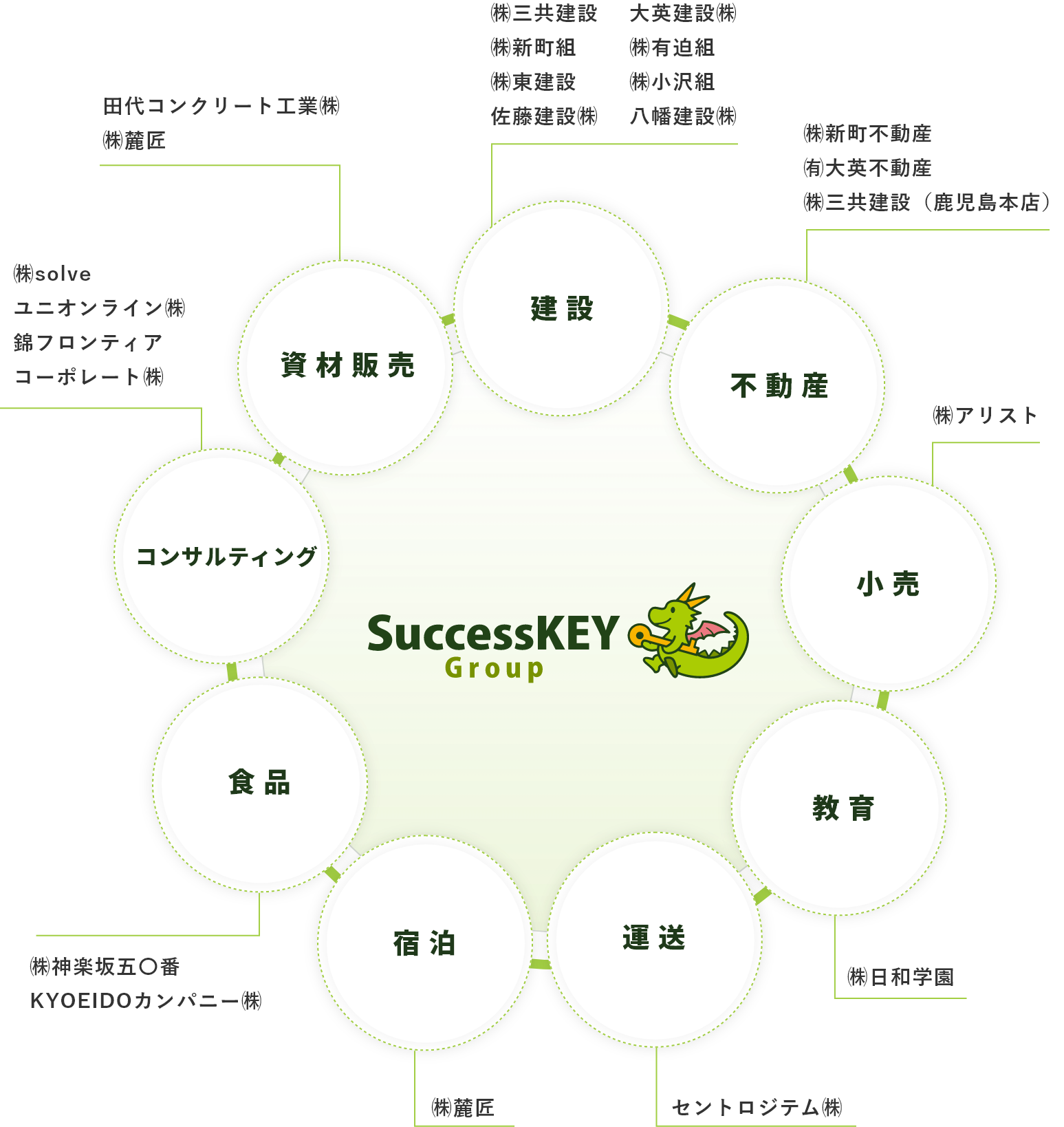 サクセスキーグループは、持続可能なSDGsモデルの実現を目指し、地方創生・国土強靭化に貢献する企業が集うグループです。それぞれの専門分野を活かしながら、共通のビジョンのもとに手を取り合い、強い社会基盤の構築に挑み続けています。 ここでは、同じ想いを共有し、未来を支えるパートナー企業を紹介します。
